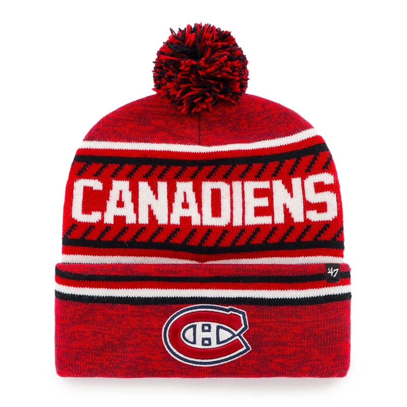 '47 brand Ice Cuff Pom Knit tassel with embroidered Montreal Canadienslogo. Official NHL licensed product. NHL beanies directly from the importer's online store.