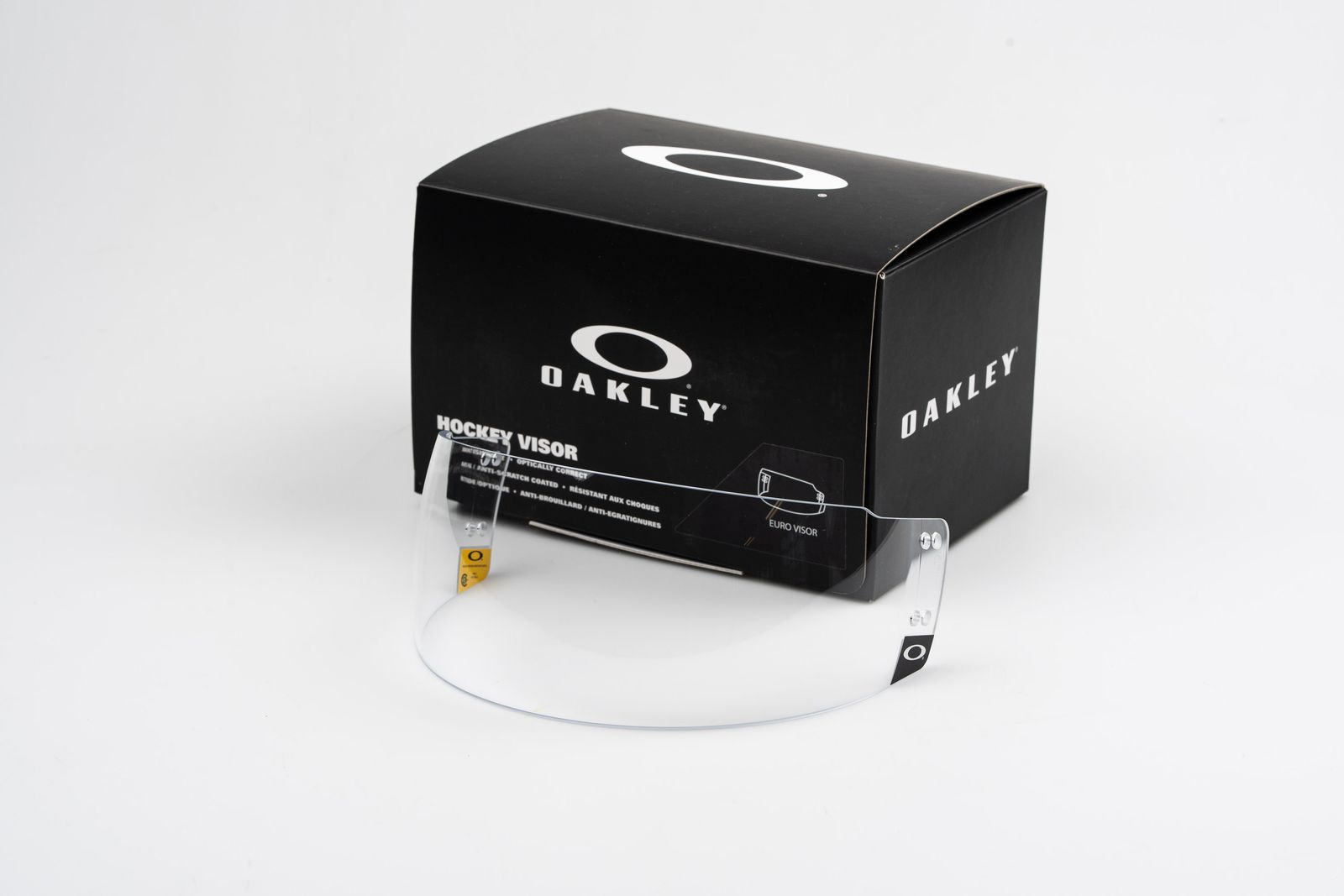 Oakley CE-Certified hockey helmet visor. Clear Euro-Cut design.Equipped with scratch and anti-fog properties.